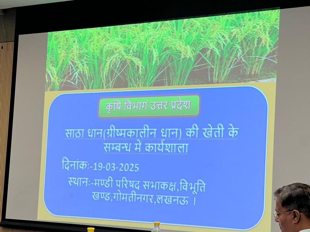 Considering the existing adverse effects and taking the learnings from the agriculture-led groundwater scarcity across Haryana and Punjab, the Department of Agriculture, Government of UP organized a workshop on Summer Rice on 19th March 2025. The state Agriculture Ministers, Principal Secretaries, ICAR Director, Vice Chancellors of multiple universities, IRRI scientists, Director from Groundwater Board, progressive farmers, and scientists from different Universities and agricultural extension centers, locally known as Krishi Vigyan Kendras (KVKs), took part in the workshop.